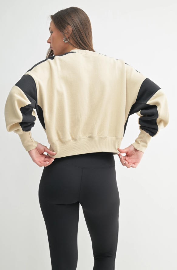 Bone/Black - Contrast Edge Cropped Sweatshirt